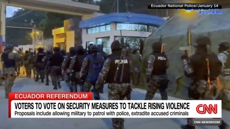 “We require urgent reforms that allow us to protect our security,” Noboa told a military event in March. “This process can only continue, it can only be sustained, if we give the National Police and the Armed Forces the clear and firm support that we are proposing in the referendum.”