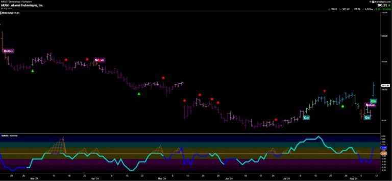 § After a retest during this week’s volatility, AKAM finished the week on strong “Go” conditions after gapping higher on a blue bar.
