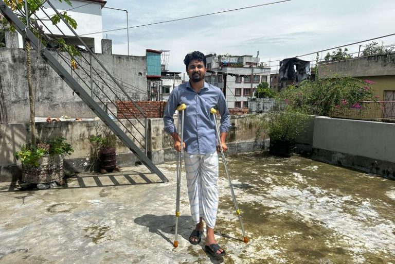 Nearly one month after his release, Alam has had the plaster cast on his foot removed, and he is now moving around on crutches.